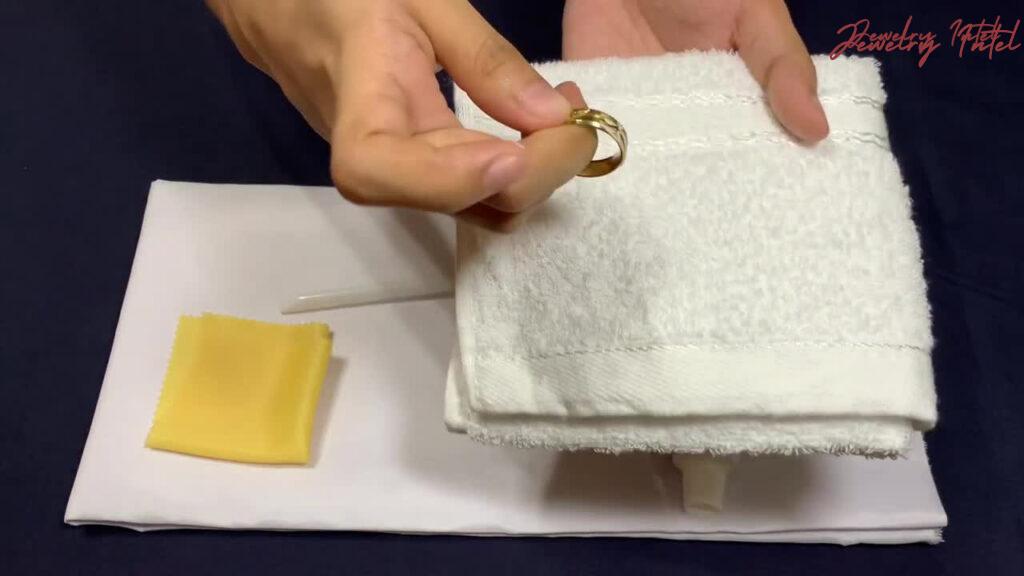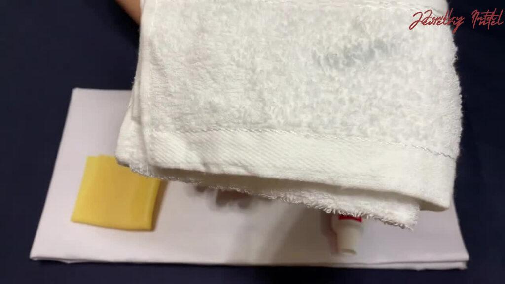 Choose a white or light-colored towel (preferably cotton), which will help you see any traces of discoloration that the toothpaste may remove from the gold piece.